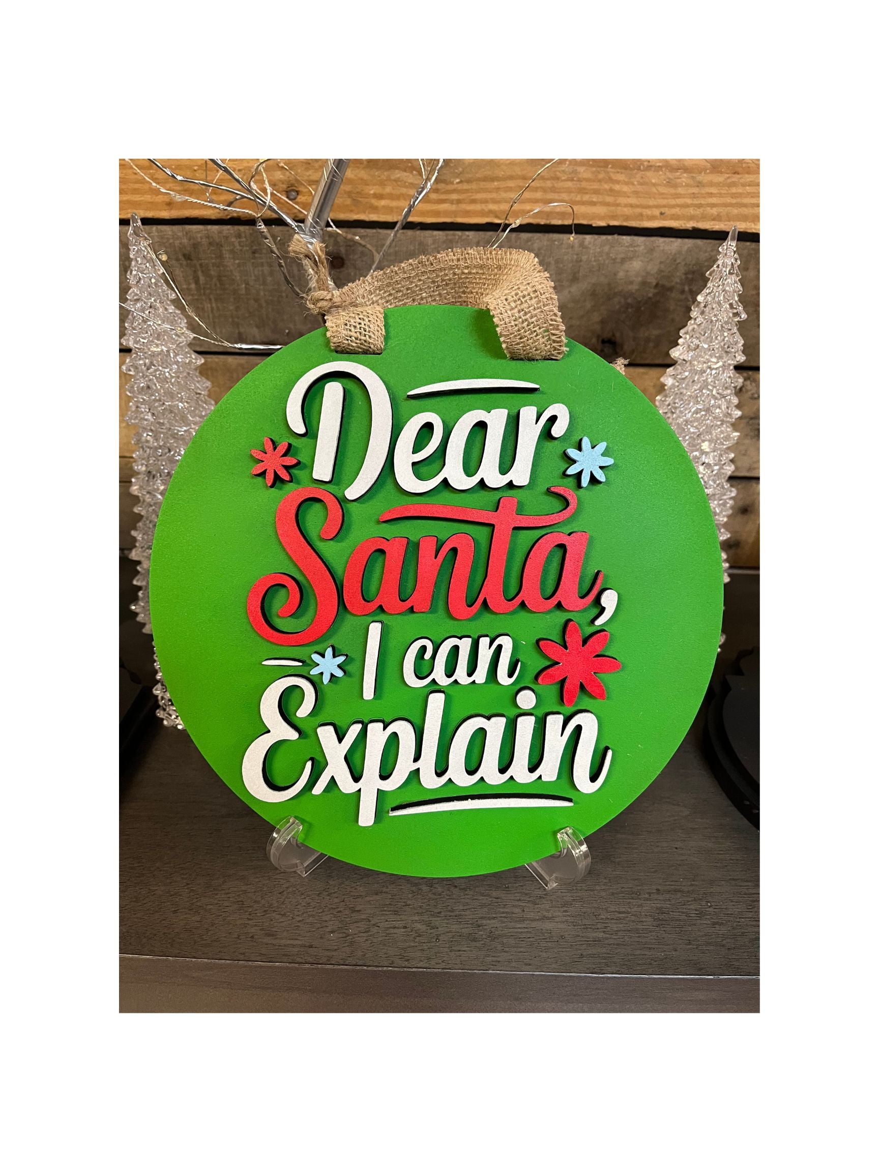 Ideal for adding holiday spirit to your home or as a fun gift for friends and family, the10 Inch "Dear Santa I can Explain" Door Sign is a must-have for creating a joyful and merry atmosphere this Christmas!