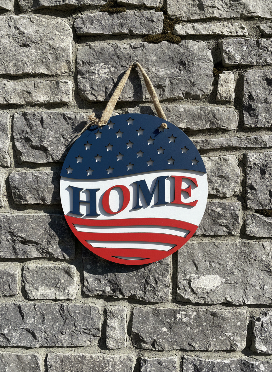 "Home" Patriotic Design Door Sign – American Flag Welcome Sign